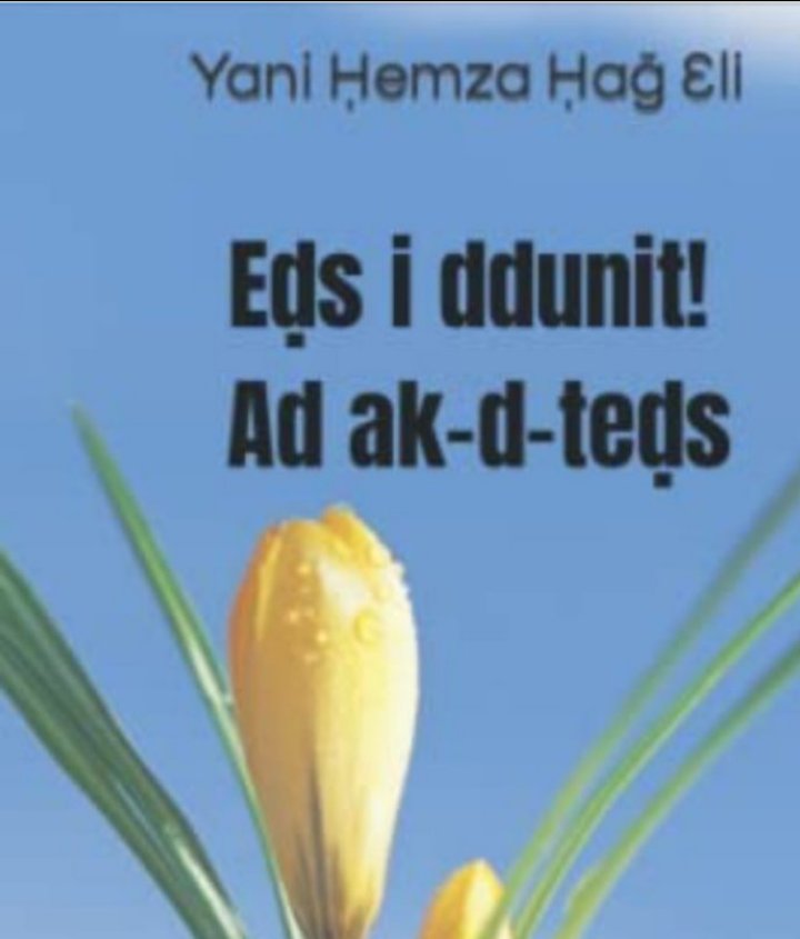I wid yebɣan ad t-id-yaɣ, ha-t-aya wassaɣ-is deg wadeg Amazon : https://www.amazon.ca/-/fr/Yani-%E1%B8%A4emza-%E1%B8%A4a%C7%A7-%C6%90li/dp/B09PMLQ88J/ref=sr_1_1?__mk_fr_CA=%C3%85M%C3%85%C5%BD%C3%95%C3%91&crid=3UA9QY8V8WO5J&keywords=E%E1%B8%8CS+I+DDUNIT%21+AD+AK-D-TE%E1%B8%8CS&qid=1641567447&s=books&sprefix=e%E1%B8%8Ds+i+ddunit+ad+ak-d-te%E1%B8%8Ds%2Cstripbooks%2C179&sr=1-1