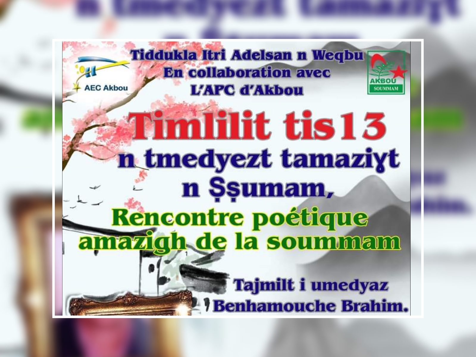 Ad d-nesmekti belli ttiεad n useggas-a ad yili d tajmilt i umedyaz Benḥemmuc Brahim. Ma d ayen yerzan azemz aneggaru n uceyyeε n yisefra, zzuzren-d deg usebter-nsen unsib n facebook belli azekka 30 yunyu i d ass aneggaru.