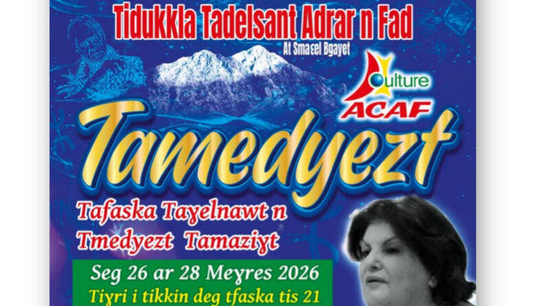 berrḥen-d yimḍebbren n tdukkla tadelsant adrar n fad ɣef ttiεad n tfaska-ya taɣelnawt n tmedyezt akked tullist di teẓrigt-is tis 21, ara yilin tikkelt-a d tajmilt i Massa Tassadit Yacine.